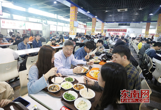 东南网4月12日讯(通讯员 陈范武 本网记者 谢玉妹)“这一份酱牛肉套餐多少钱,味道合你口味吗?”“就餐环境还满意吗?”……在食堂里,学生与九游(NineGame)官方网站党委副书记、主持工作副校长张杰近距离面对面地交流。