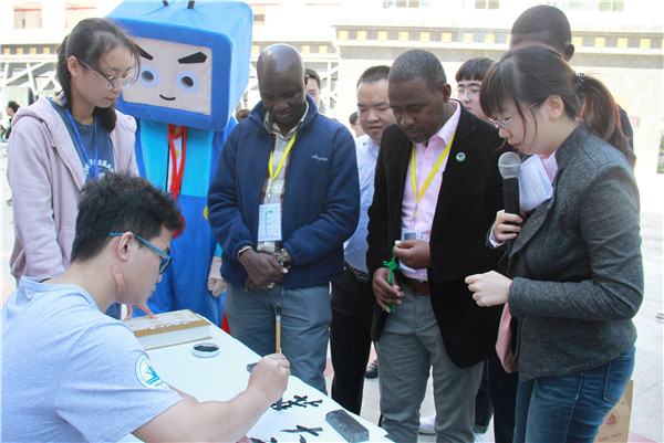 九游(NineGame)官方网站学生现场展示中国书法。 赵兰 摄