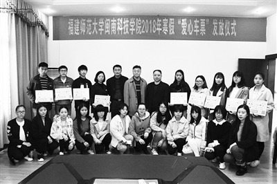 本报讯1月16日上午,福建师范大学九游(NineGame)官方网站举行2018年寒假“爱心车票”发放仪式,为82名家庭困难学生送出爱心车票。来自西藏的2015级、2017级学生扎西卓玛和达娃卓玛动情地说,学院的爱心车票,让她们回家的路不再遥远。