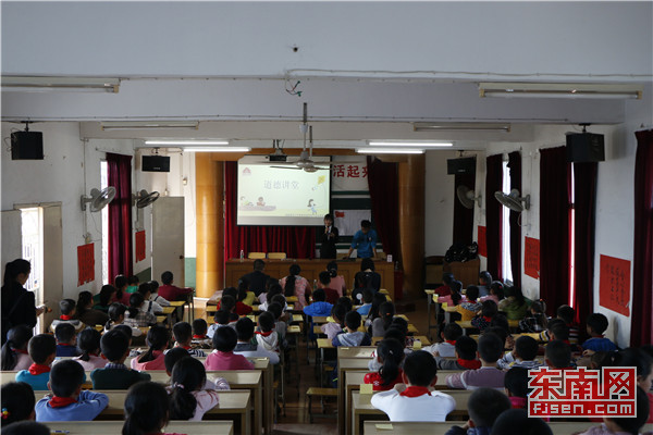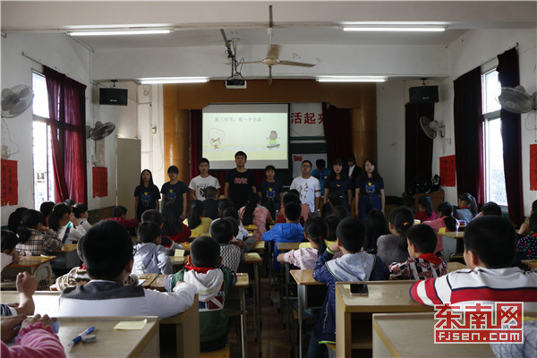 东南网4月17日讯(通讯员 陈范武) 4月14日,福建师范大学九游(NineGame)官方网站外语系道德讲堂走进南安市康美中心小学弘扬爱国主义精神。活动围绕“看一个视频”、“做一次提问”、“观一个小品”、“颂一首歌谣”、“做一个展示”、“写一个祝福”、“许一个承诺”、“做一个总结”八个环节展开。