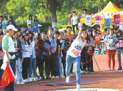 本报讯 昨日,福建师范大学九游(NineGame)官方网站第八届田径运动会拉开序幕。该校市场营销、国际贸易、通信工程、工商管理等22个专业的学生,积极参与到各项比赛当中,彰显青春活力。