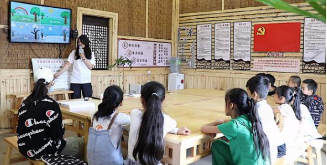 实践队前往茨营镇海三口彝族村,与留守村里的20余名少数民族小朋友开展为期一周的“大手牵小手”爱心支教活动。在三口彝族村红色驿站,实践队队员结合动画视频和专业讲解,带领小朋友们读写英语单词、学唱英文歌曲。此外,队员们还开展了诗词、书画、舞蹈、手工、化学小实验等课程和互动游戏,通过寓教于乐的形式,丰富小朋友们的暑期生活。