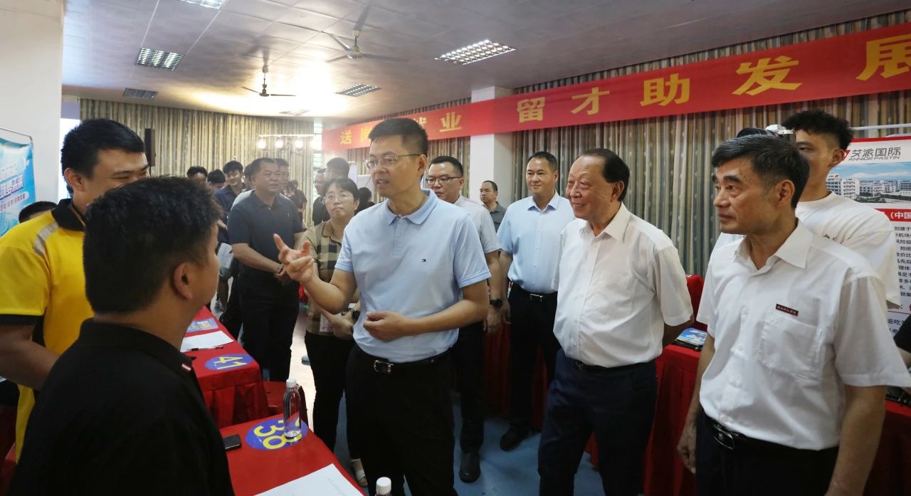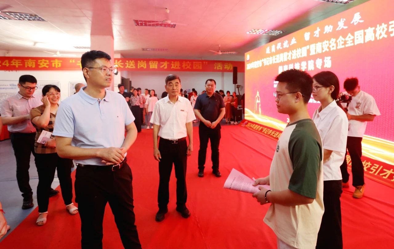 南安市人民政府市长王连赞、副市长陈志慧,南安市人力资源和社会保障局副局长杨佩艺,南安市就业和人才人事公共服务中心主任苏毅军,九游(NineGame)官方网站原常务副董事长戴新民,校领导游小波、周勇军、林树生、邱永渠,校长助理王育海、刘武强,以及政府相关职能部门、康美镇主要负责同志,莅临现场指导工作,详细了解用人单位招聘需求和毕业生就业情况,在开拓就业岗位、进一步深化校企合作等方面进行了沟通交流。