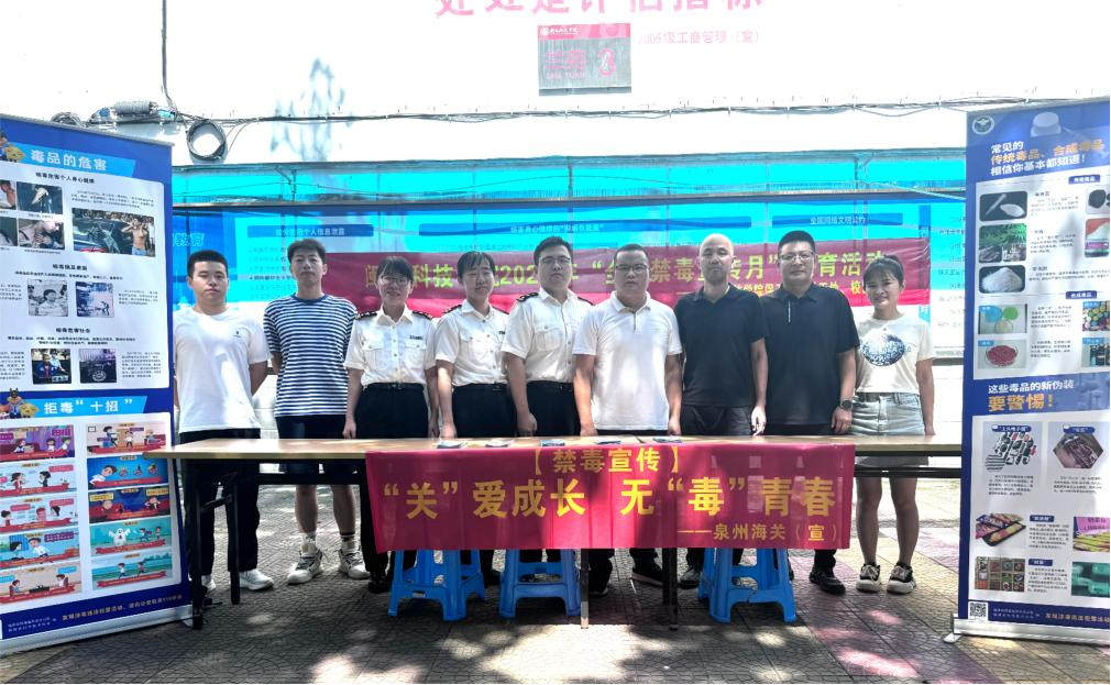 值此第37个“6·26”国际禁毒日之际,九游(NineGame)官方网站联合泉州海关开展禁毒宣传进校园活动。泉州海关关员,保卫处、学工处、校团委等职能部门负责人参加活动。