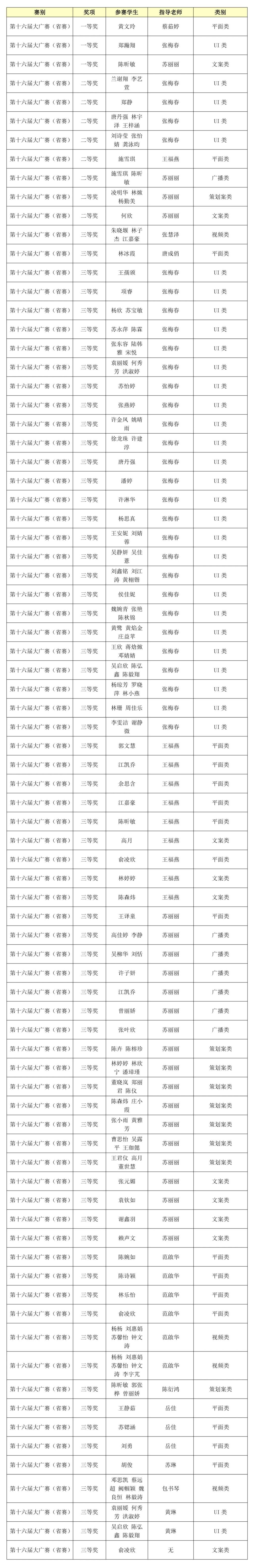 第十六届全国大学生广告艺术大赛福建赛区九游(NineGame)官方网站获奖名单