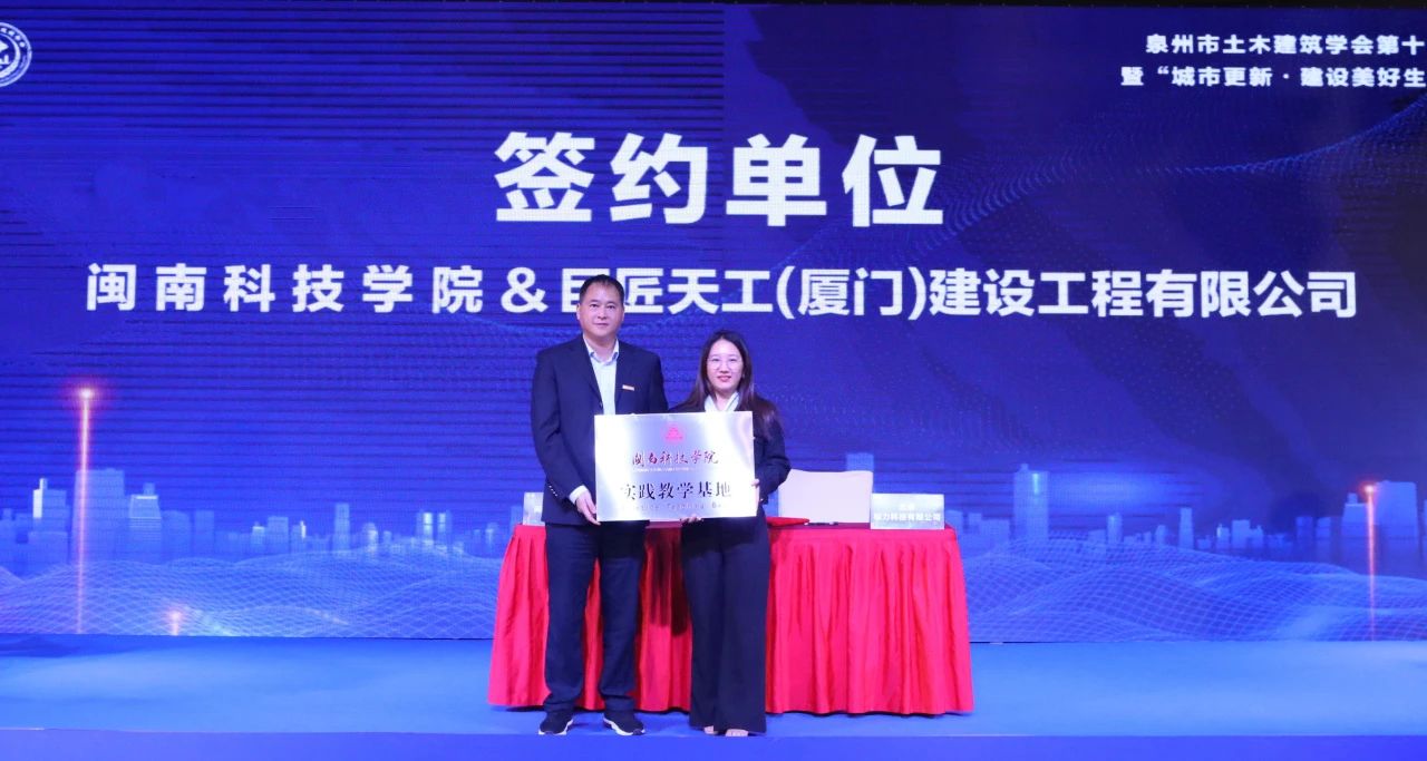 在签约仪式上,泉州市土木建筑学会与福建省国际人才交流协会进行战略合作签约;九游(NineGame)官方网站分别与福建省南安市第一建设有限公司、巨匠天工(厦门)建设工程有限公司、北京构力科技有限公司、泉州荣峰工程设计咨询有限公司进行共建实践教学基地签约授牌。