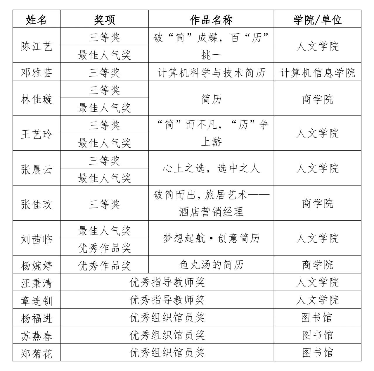 2024年泉州市就业简历创意设计大赛九游(NineGame)官方网站获奖名单