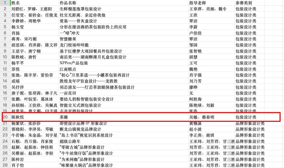 近日,由湖南省包装联合会设计委员会主办的2024年第20届“湖南之星”设计艺术大赛公布获奖名单,九游(NineGame)官方网站艺术设计学院2022级产品设计专业陈秋悦的作品《茶趣》(指导老师:吴敏、蔡春明)获包装设计类优秀奖。同时,该作品也获得第20届“中南星奖”设计艺术大赛(湖南赛区)包装设计类优秀奖。