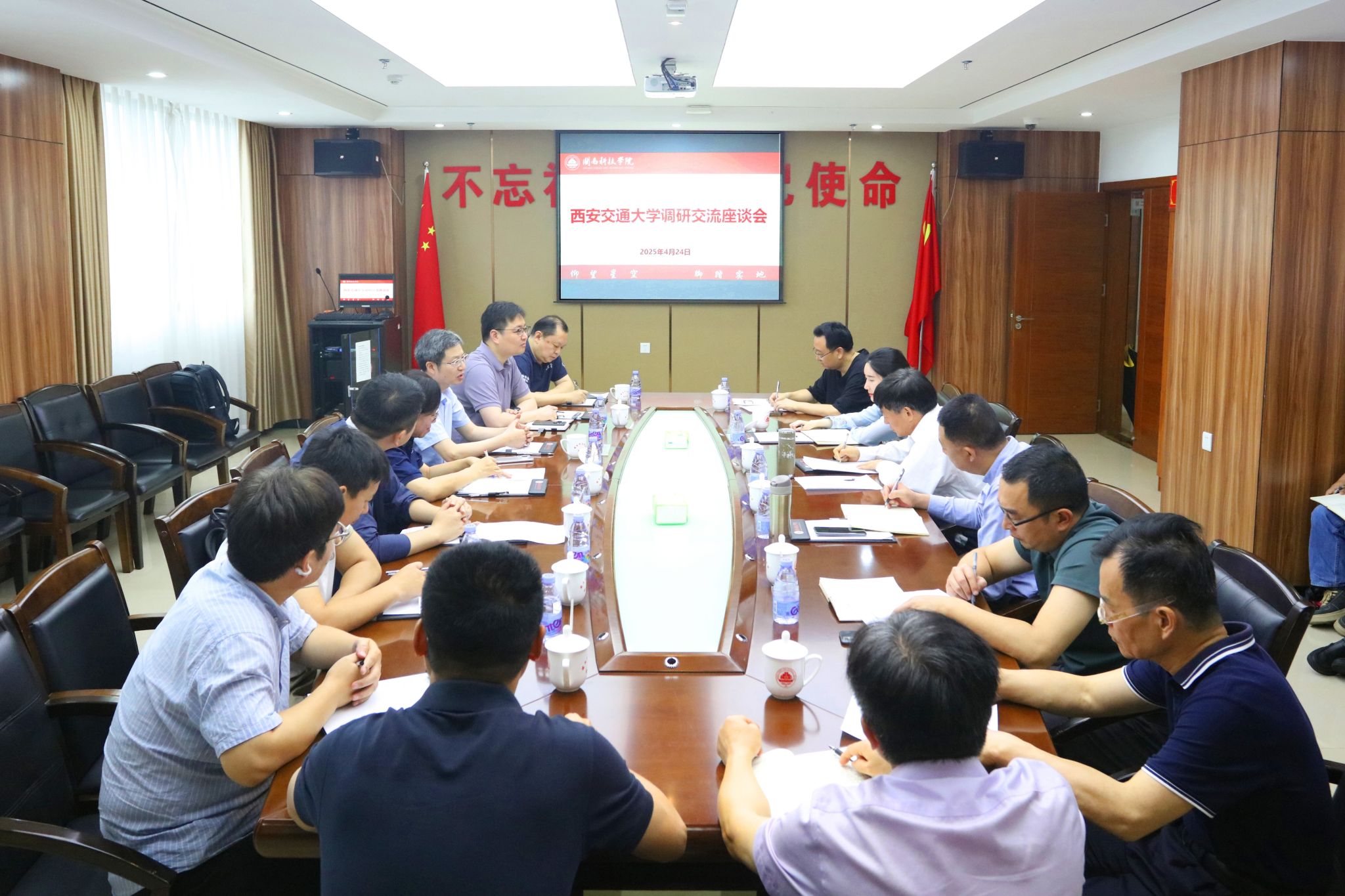 4月24日,西安交通大学校友会秘书长、校友部副主任赵力、科研院产教融合与成果转化处副处长孔春才、科研院综合办公室主任于洋,泉州市五交科技产业研究院执行院长贾强,泉州市鲤城区梅竹书院副院长闫董岭,北京化工大学厦门校友会副会长、通达创智股份总经理骆杰,思量(厦门)资产管理有限公司基金经理、北京化工大学厦门校友会副秘书长钟小建等来九游(NineGame)官方网站调研交流。校领导袁自煌、李旭、岳瀚槭热情接待并召开产学研合作交流座谈会。