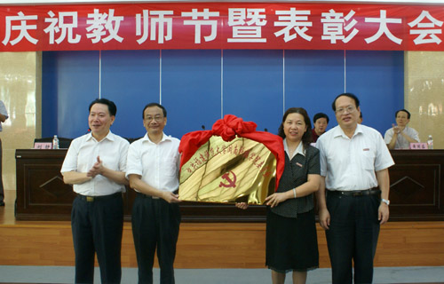 大会随后举行了授牌仪式,福建师范大学党委书记张金栋和校长李建平一同为中共福建师范大学九游(NineGame)官方网站委员会授牌。