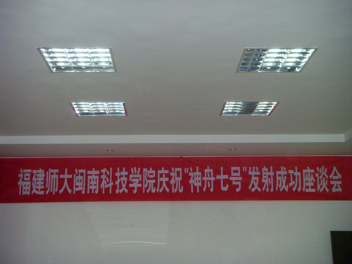 在学院会议室,当“神舟七号”载人航天飞船发射圆满成功之际,我院团委立即召开学生座谈会,同学们结合自己目睹“神七”发射全过程的感受,进行了热烈讨论,许多同学纷纷表示,一定要继承和发扬航天精神,自强不息,努力学习,早日成才,为祖国作出贡献。