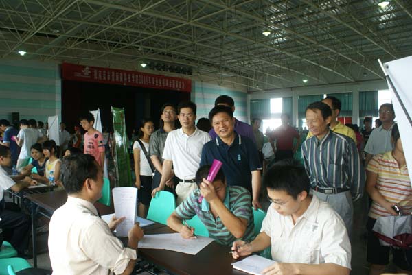 供需见面会上,人声鼎沸,热闹非凡。各用人单位招聘摊位前都挤满了前来应聘的毕业生。南安市委常委、常务副市长刘志平、南安市劳动保障局局长李聪民、南安市就业管理中心主任陈良呈、中国联通泉州市分公司副总经理谢武生、中国联通南安市分公司总经理侯浩天、学院院长黄国盛教授、学院党委陈振祯副书记亲临现场指导和推荐毕业生。学院毕业班辅导员也积极为毕业生提供各种帮助。招聘会结束后,南安市领导与我院领导还针对今年就业市场的新情况新形势进行座谈,提出了建设性意见。