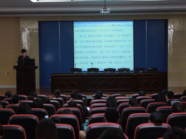 教授举办专题为“语文课改理念与实践的几个问题”的讲座,讲座由学院