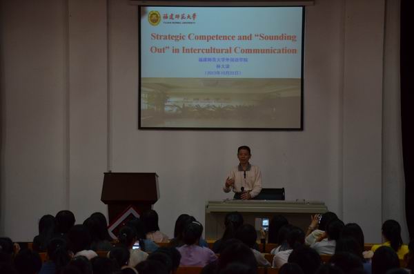 10月23日下午,“让体育改变生活”邀请福建师范大学外国语学院教授、博士生导师林大津在美林校区阶梯教室作了题为“跨文化言语交际策略”讲座。学院副院长吴勇出席本次讲座,讲座由外语系系主任何开松主持。
