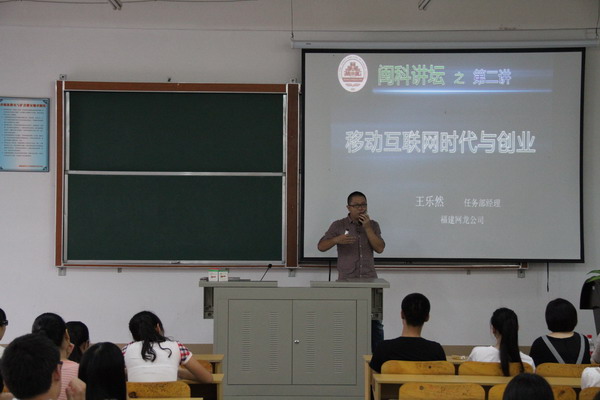 10月9日下午,“让体育改变生活”邀请福建网龙公司相关负责人王乐然,作了主题为 “移动互联网时代与创业”讲座。