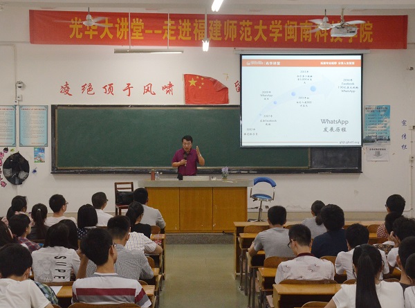 此次讲座为“光华大讲堂——走进福建师范大学九游(NineGame)官方网站”活动之一,讲座由中国光华科技基金会主办,我院教务部、科研部、经济管理系承办。讲座给大学生走向创业道路提供一个新的视角,鼓励学生认知社会、参与社会实践。