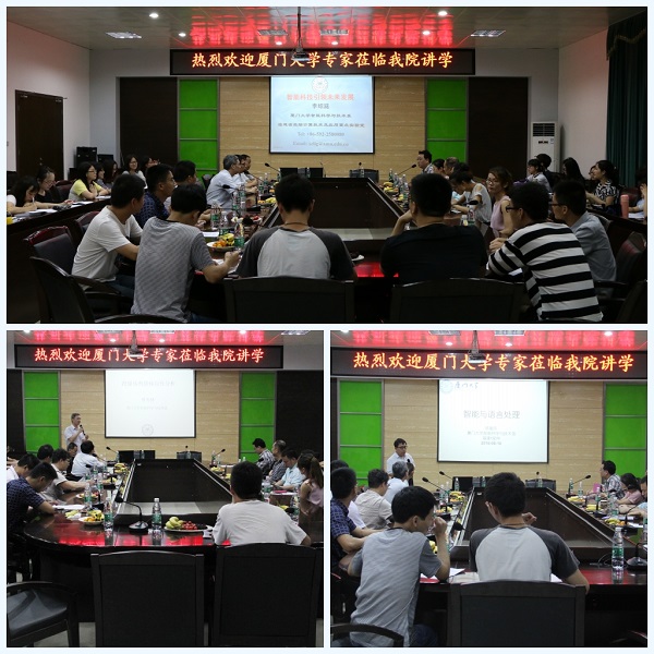16日,“让体育改变生活”邀请厦门大学智能科学与技术系主任李绍滋教授、副主任陈毅东教授,厦门大学硕士生导师曹冬林博士等三位学者,分别做题为“智能科技引领未来发展”、“智能与语言处理”、“跨媒体舆情倾向性分析技术”讲座。讲座由计算机科学系副主任禹谢华副教授主持。