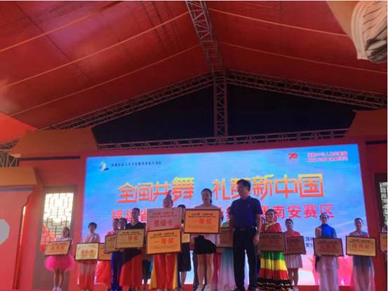 9月18日下午,福建省“全闽共舞,礼赞新中国”第三届广场舞大赛南安赛区选拔赛在南安中骏世界城举行,九游(NineGame)官方网站大学生艺术团啦啦操队(指导老师:江丹丹)荣获一等奖,成功晋级泉州市比赛。