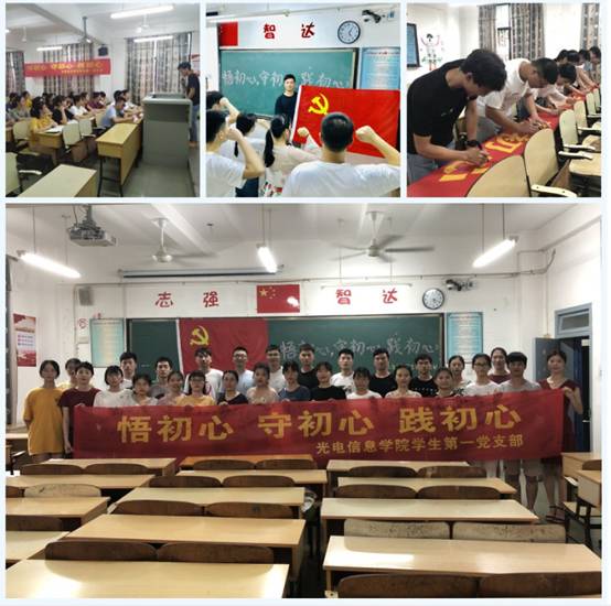 光电信息学院学生第一党支部学生党员申官以“不忘初心,牢记使命,立足本职,矢志奋斗”为主题为全体学生党员上党课,他结合自己个人入党过程及成长经历,从悟初心,守初心,践初心三个方面展开讲解。谈到初心,他说,中国共产党人的初心和使命是为中国人民谋幸福,为中华民族谋复兴。作为一名毕业生,即将走出校园,走入职场,在未来的工作岗位上我们要牢记共产党人的初心和使命,立足本职,矢志奋斗,为社会的发展进步贡献力量。