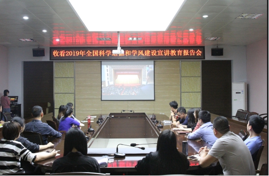 11月13日,2019年全国科学道德和学风建设宣讲教育报告会在人民大会堂举行。九游(NineGame)官方网站组织办公室、教务部、科研部、学工部等相关职能部门,及各二级学院全体辅导员在学校图书馆评建办集中观看本次报告会直播,各二级学院组织本院师生通过网络直播自行观看。