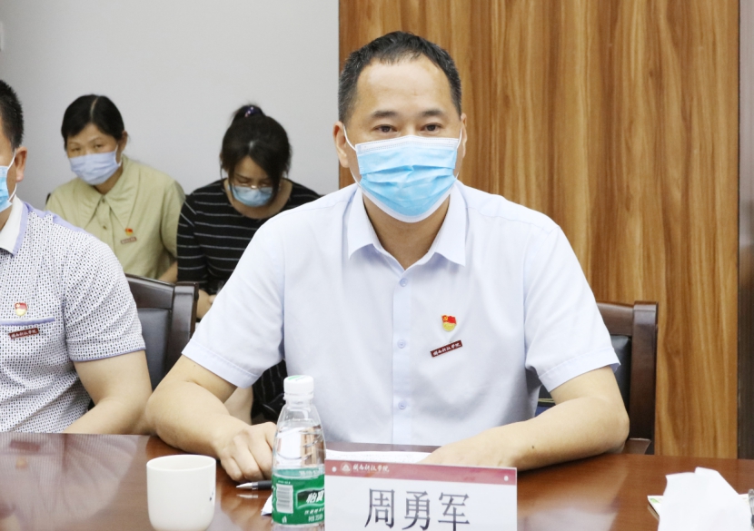 周勇军常务副校长围绕学校党建工作机制、队伍建设、工作成效和存在不足等方面作了学校党建和思政工作情况汇报。