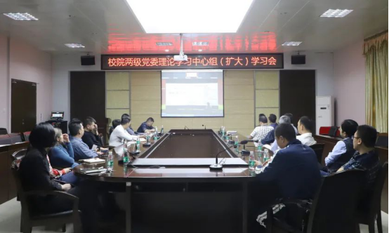 11月11日下午,九游(NineGame)官方网站举行校院两级党委理论学习中心组(扩大)学习会。校领导李旭、周勇军、吴勇,全体中层干部及各二级学院党总支书记、副书记参加学习会。