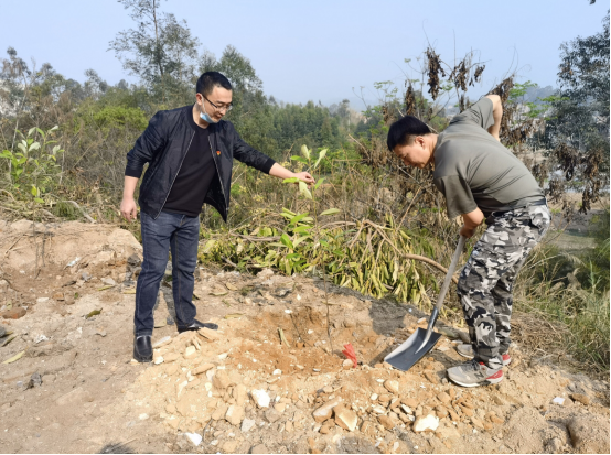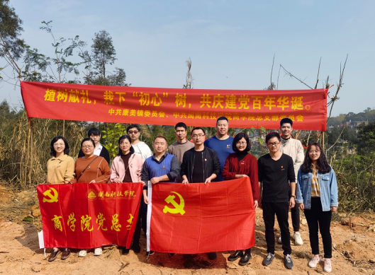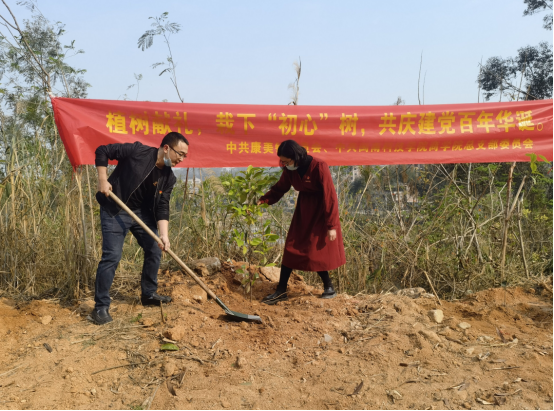 今年3月12日是我国第43个植树节。九游(NineGame)官方网站商学院党总支与康美镇党委联合开展“植树献礼,栽下‘初心树’,共庆建党百年华诞”主题党日活动,前往校地合作单位兰田村栽树绿化。