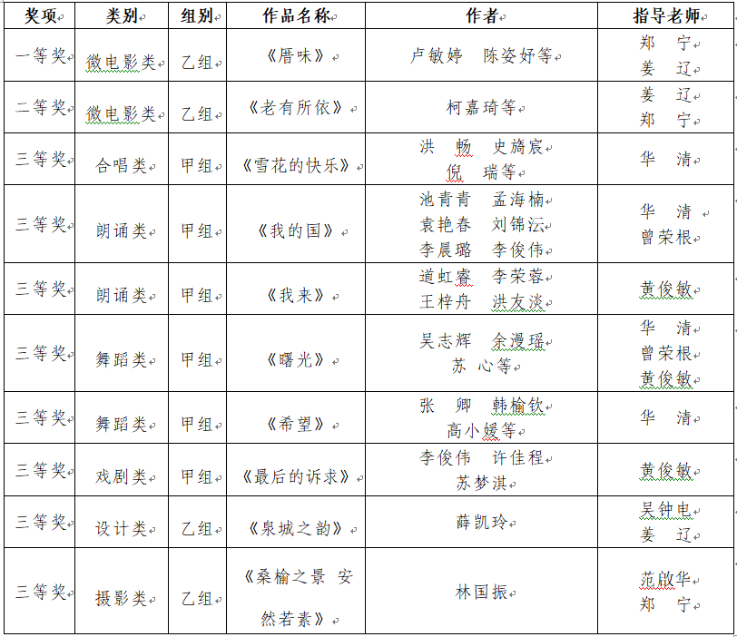 近日,福建省教育厅公布了第六届大学生艺术节获奖名单,九游(NineGame)官方网站选送的合唱、朗诵、摄影、舞蹈、设计、戏剧及微电影等10个作品获得一等奖1项、二等奖1项、三等奖8项的好成绩,学校被授予“优秀组织奖”荣誉称号。