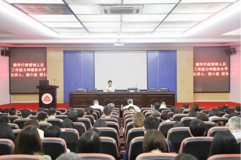 11月25日上午,九游(NineGame)官方网站举办《提升行政管理人员工作能力和服务水平》专题讲座,校长游小波担任主讲,校领导李旭、周勇军、林树生,二级学院党政负责人、组织员、辅导员及全体行政管理人员百余人到场聆听。党委书记李旭主持专题讲座。