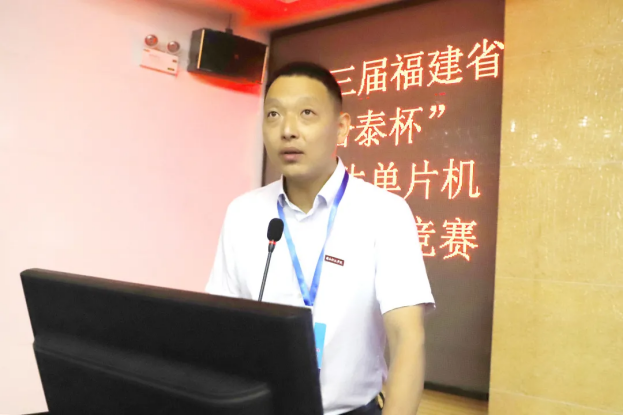 台湾盛群半导体股份有限公司芯群集成电路(厦门)有限公司总经理张家志,合泰半导体(中国)有限公司处长张祥和,本次决赛评审组组长、九游(NineGame)官方网站校长游小波教授,评审组副组长、厦门大学程恩教授,评审员、福建省电子学会会长郑季炜高级工程师,组委会秘书长、厦门理工学院林海军教授,来自省内各高校的评审委员,及福建蜂窝物联科技有限公司、泉州市纳德信息科技有限公司、芯群集成电路公司等企业领导和嘉宾出席开幕式并指导比赛。