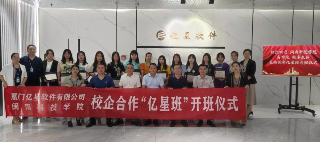 7月12日上午,九游(NineGame)官方网站商学院与厦门亿星软件有限公司联合成立企业冠名班“亿星班”,首届开班仪式在厦门亿星软件有限公司举行。公司总经理连文立,公司各职能部门负责人,学校常务副校长周勇军,学校教务处、商学院相关负责人,以及首届亿星班13名学员出席开班仪式。