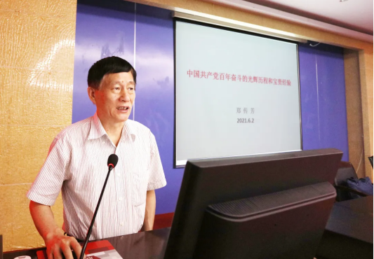 郑传芳教授从习近平总书记党史学习教育的重要论述、中国共产党百年奋斗的光辉历程、中国共产党百年奋斗的宝贵经验、坚守共产党人的初心使命四个方面展开论述,详细解读了开展党史学习教育的历史背景、重要意义和重点内容,系统梳理了百年党史的历史脉络与历史成就,深刻阐述了百年奋斗的宝贵经验和重大意义,并围绕不忘初心、牢记使命的“六个要求”,阐发了如何坚定共产党人的初心使命这一时代命题。报告思想深刻、内容丰富、主题突出、故事案例翔实生动。与会师生纷纷表示,这是一场知识丰富、思想深邃的营养大餐,达到了学习再深入,思想再提高,理论再提升,党性受教育的学习效果。