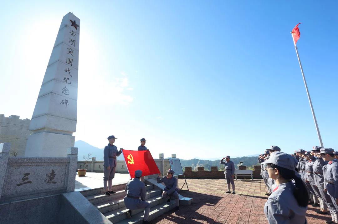 “为了缅怀苦湖突围战役的革命烈士,也为了让红色革命精神继续传承下去,三凌村在苦湖突围战役的遗址上设立了纪念碑……”在庄严肃穆的苦湖突围战纪念碑前,大家认真聆听讲解员介绍革命先烈们不畏艰险、不怕牺牲、浴血奋战的英勇事迹。