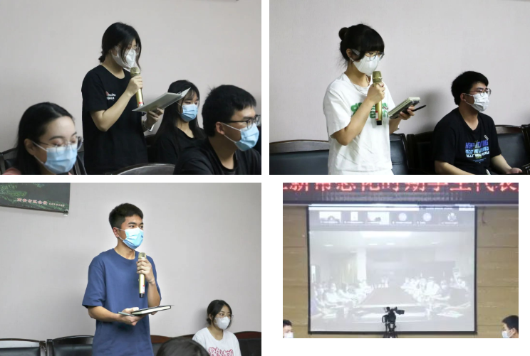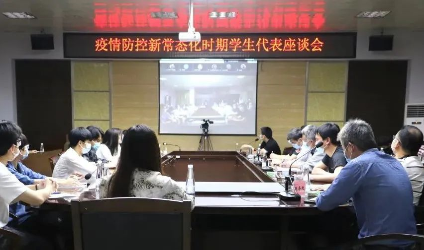 与会学生代表通过线上线下分别表达了各自对疫情防控新常态化时期的认识,并围绕教学安排、校园管理、后勤保障、心理健康等方面进行提问发言,对学校疫情防控新常态化时期的管理提出意见和建议。