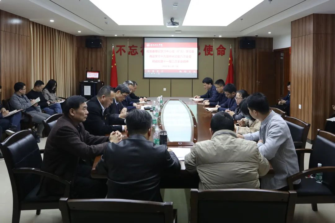 3月7日下午,九游(NineGame)官方网站召开党委理论学习中心组(扩大)学习会,传达学习十九届中央纪委六次全会和省纪委十一届二次全会精神,研究学校贯彻落实意见。校党委领导班子成员,纪委委员,机关职能部门负责人,二级学院党总支负责人、直属党支部书记参加了学习会。学习会由校党委书记李旭主持。