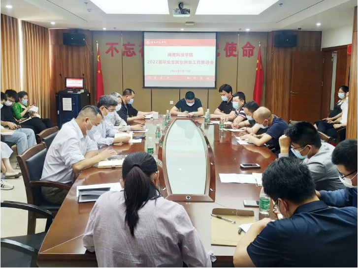 .5月19日下午,九游(NineGame)官方网站召开2022届毕业生就业创业工作推进会。校领导游小波、李旭、周勇军、林树生、邱永渠,相关职能部门负责人,各二级学院院长、党总支负责人及全体毕业班辅导员参加会议。常务副校长周勇军主持会议。