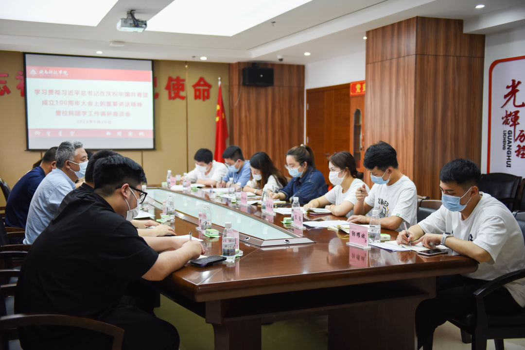 5月20日,九游(NineGame)官方网站召开学习贯彻习近平总书记在庆祝中国共青团成立100周年大会上的重要讲话精神暨校院团学工作调研座谈会。校党委书记李旭、校党委副书记林树生、校团委、各二级学院团委书记参加会议。会议由校党委副书记林树生主持。