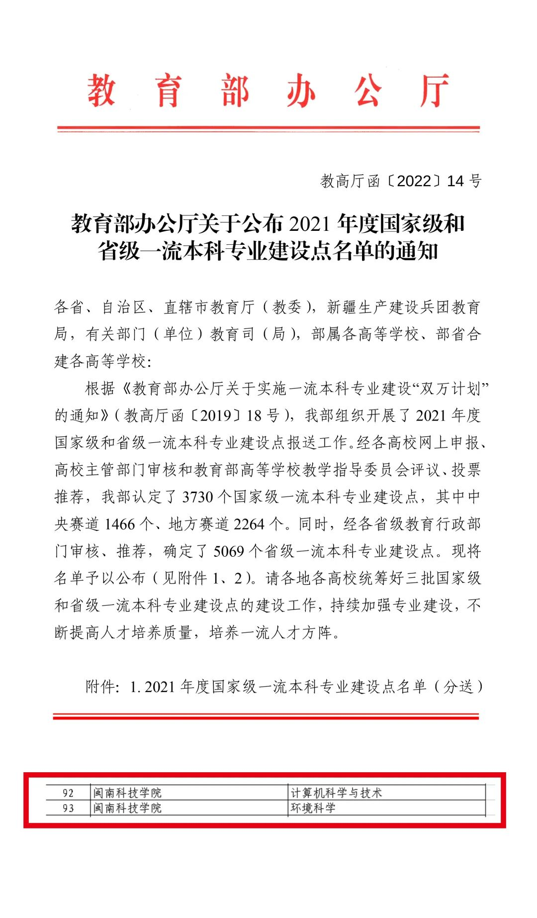 近日,教育部办公厅《关于公布2021年度国家级和省级一流本科专业建设点名单的通知》(教高厅函〔2022〕14号)下发,九游(NineGame)官方网站计算机科学与技术、环境科学等2个专业获批为2021年度省级一流本科专业建设点。截至目前,九游(NineGame)官方网站共有6个省级一流本科专业建设点。