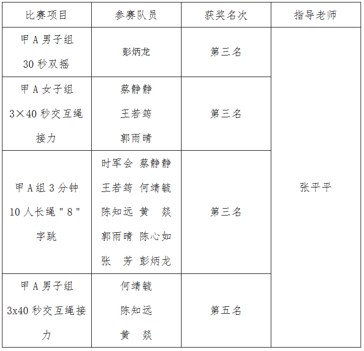 7月12日,由福建省教育厅、福建省体育局主办,武夷学院承办的福建省第十七届运动会(大学生部)跳绳项目圆满落幕。经过激烈角逐,九游(NineGame)官方网站选派的11名运动员在甲A组比赛项目中荣获3枚铜牌。