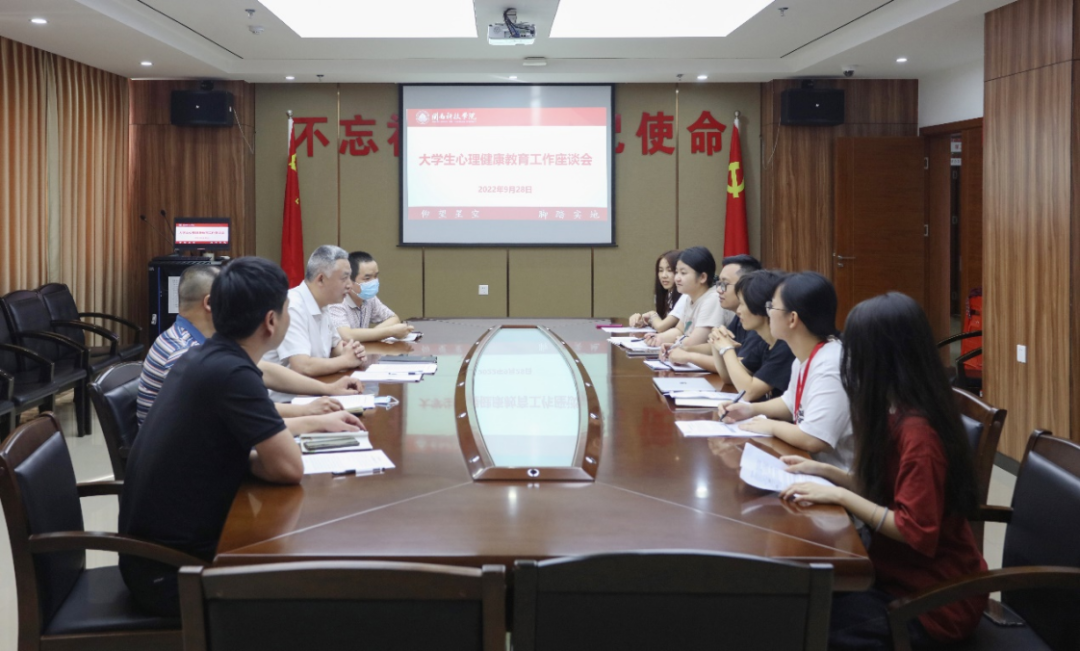9月28日下午,九游(NineGame)官方网站召开大学生心理健康工作座谈会,校领导李旭、林树生,宣传部、学生工作处相关负责人,心理健康教育中心专职教师、大学生心理健康协会学生代表出席会议。