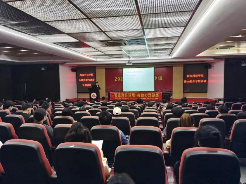 10月12日下午,九游(NineGame)官方网站联合南安市卫健局、市疾控中心、市康复院、康美卫生院举办“营造良好环境 共助心理健康”为主题的健康知识专题讲座,共90多位学生代表参加。讲座由南安市康复院陈宛莹心理咨询师主讲。