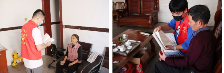 大学生宣讲小分队紧扣党的二十大精神,运用“接地气”的闽南乡音、大量生动鲜活的实例,通过集中宣讲和走村入户的形式,向当地村民详细解读了党的二十大召开的历史背景、会议主题和取得成果,以及党的二十大精神中的惠民好政策,大家谈心得、话感悟,坚信在中国共产党的带领下,老百姓的生活一定会越来越好。