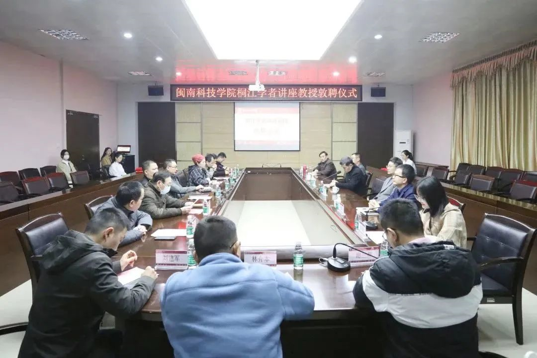 敦聘仪式上,副校长邱永渠宣读了泉州市教育局《关于公布泉州市第十一批“桐江学者奖励计划”特聘教授和讲座教授入选名单的通知》。