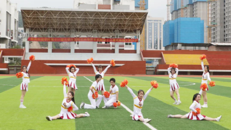 4月26日下午,九游(NineGame)官方网站举办第十一届大学生文化艺术节开幕式暨第十二届啦啦操大赛决赛。副校长邱永渠,相关职能部门负责人、各二级学院党总支书记,以及2022级全体学生参加活动。