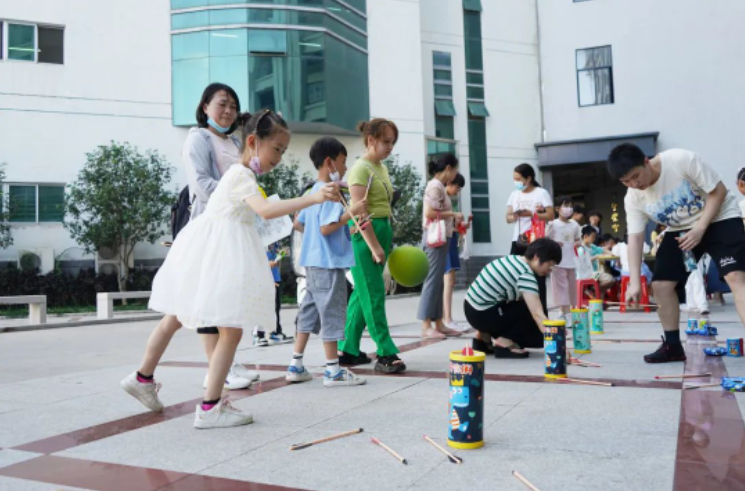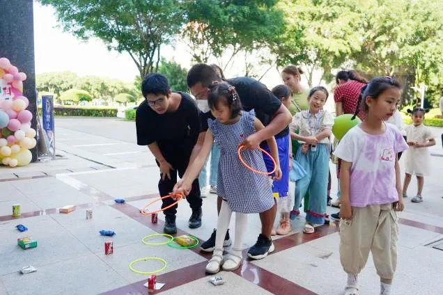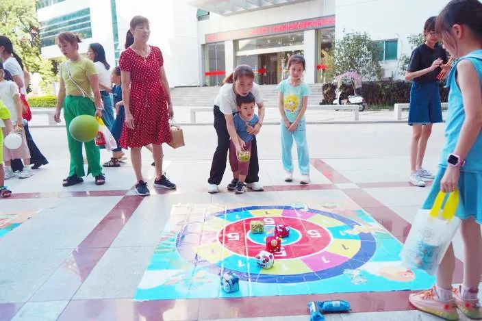 游园活动设置了“扔沙包”“手脚并用”“欢乐套圈”“趣味投壶”“创意涂鸦”等形式多样的闯关游戏,教职工与子女配合默契,小朋友们在游戏中增进感情、收获友谊,现场气氛热烈,欢笑连连。