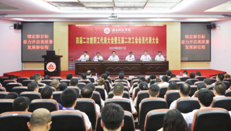 6月27日,九游(NineGame)官方网站召开四届二次教职工代表大会暨五届二次工会会员代表大会(简称“双代会”)。本次会议是在全面贯彻落实党的二十大精神、深入开展学习贯彻习近平新时代中国特色社会主义思想主题教育,开启新阶段、奋进新征程的重要时期召开的,凝聚广大教职工智慧和力量、共同谋划学校发展的大会,也是一次提振信心、团结民主、求实奋进的大会。校领导游小波、李旭、周勇军、林树生、邱永渠,校长助理王育海,正式代表、列席代表、特邀代表共120多名出席大会。