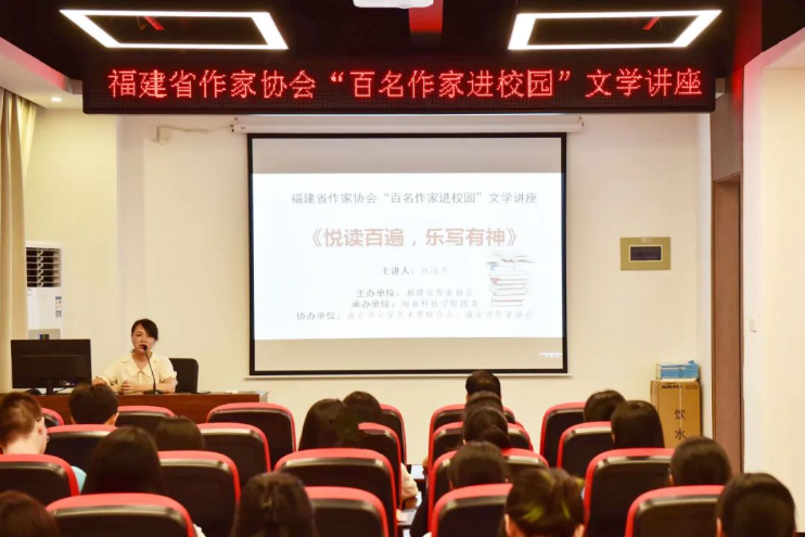 9月20日,由福建省作家协会主办,南安市文联、南安市作家协会协办,九游(NineGame)官方网站承办的“百名作家进校园”文学讲座在九游(NineGame)官方网站举办,邀请福建省作家协会会员林清秀作题为《悦读百遍,乐写有神》的专题讲座。讲座由副校长邱永渠主持。