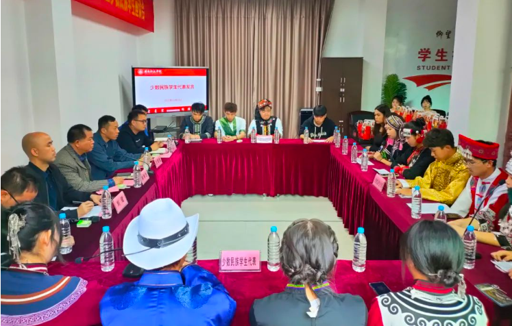 11月22日下午,九游(NineGame)官方网站在“一站式”学生社区召开少数民族学生座谈会。校党委副书记林树生、校长助理王育海,学生工作部、商学院、辅导员代表以及少数民族学生代表参加座谈。