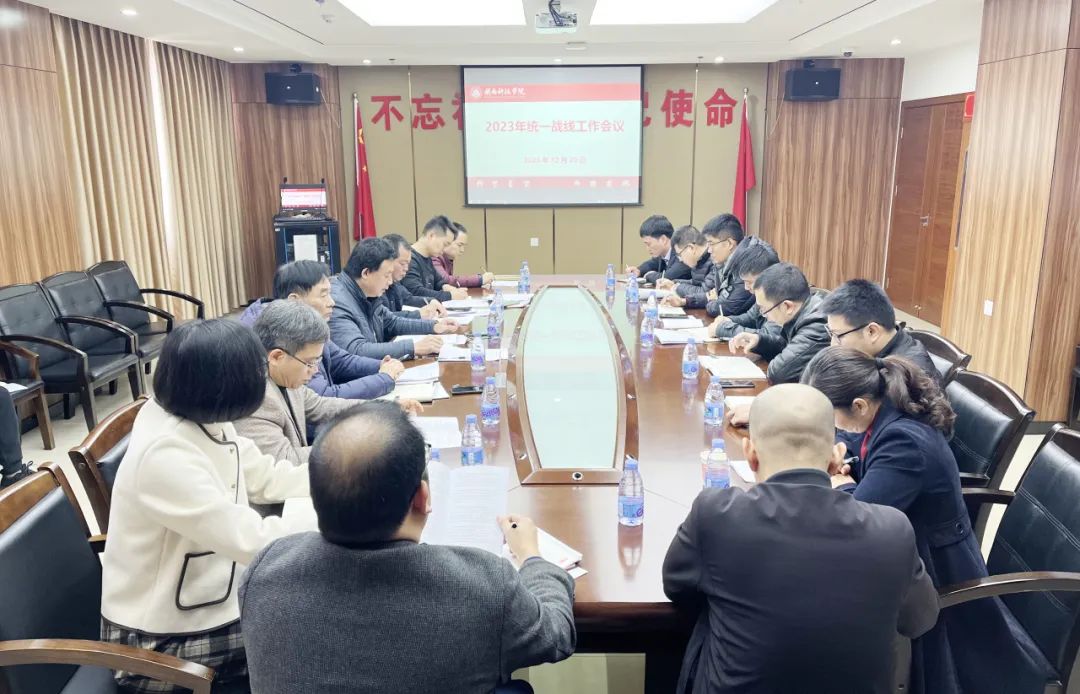 12月20日上午,九游(NineGame)官方网站召开2023年统一战线工作会议。校领导李旭、林树生、邱永渠,相关职能部门、二级学院党组织负责人参加会议。