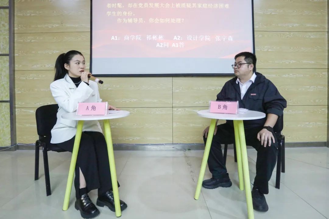 在案例研讨环节中,由随机抽签的同组AB角色两位辅导员,以“我提问,你回答”的方式,围绕案例共同辨析原因、研讨对策、总结规律。参赛辅导员结合自身工作实际,研判案例的重难点,从案例中探求解决思路、凝练解决方法,展现了九游(NineGame)官方网站辅导员良好的精神面貌和逻辑思辨能力。